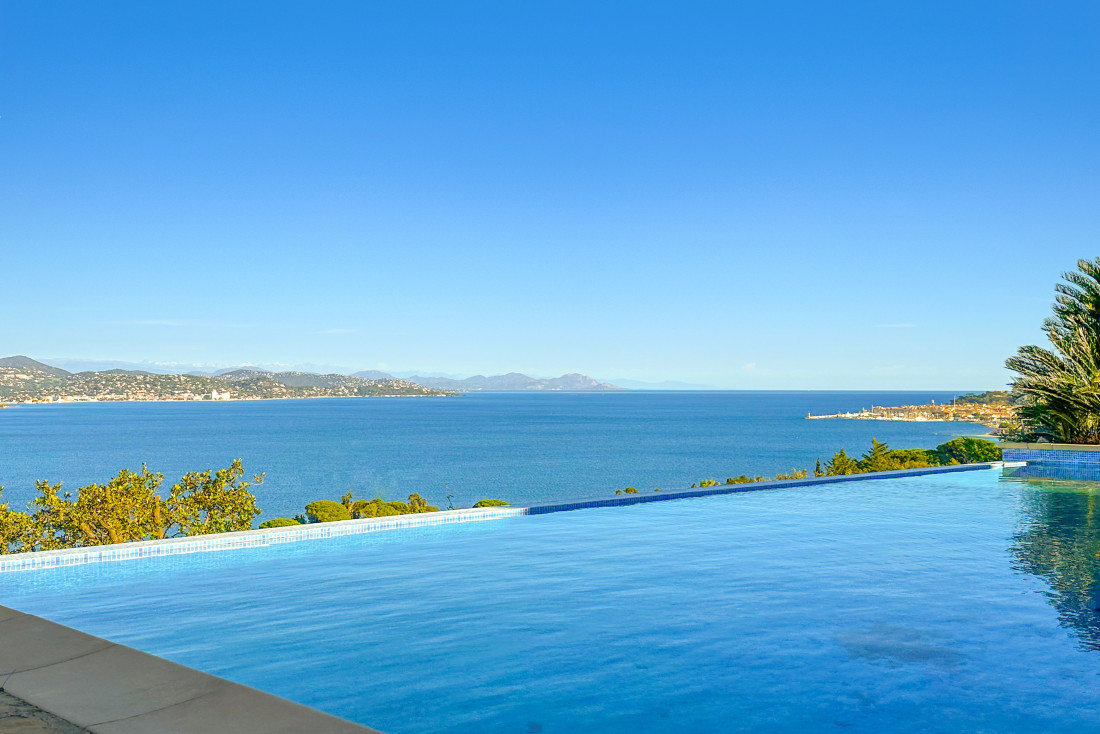 En beschikt over een panoramisch zicht op de baai van Saint-Tropez. Het bestaat uit een grote woonkamer met open haard, volledig uitgeruste keuken,