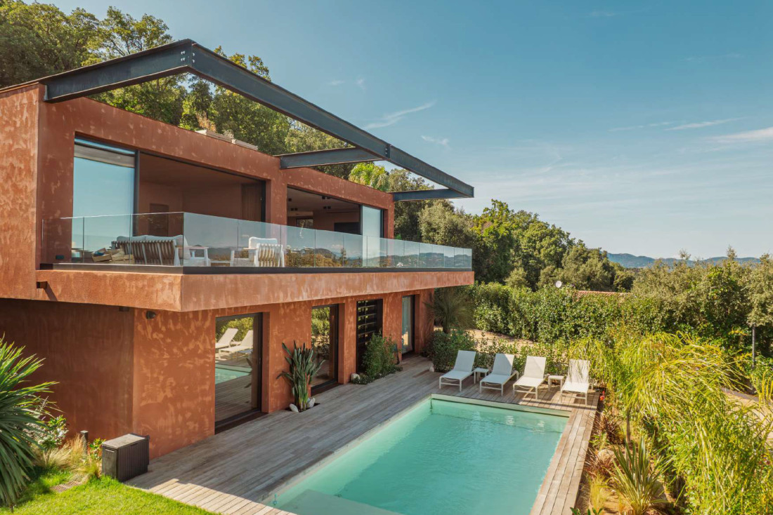 Recently built, this contemporary villa was designed to enhance these landscapes from every room. Spanning 400 m² of living space on a landscaped 1,200 m² plot, it blends elegance with functionality. The meticulously designed outdoor areas include a swimming pool, expansive terraces, parking spaces, and a garage.