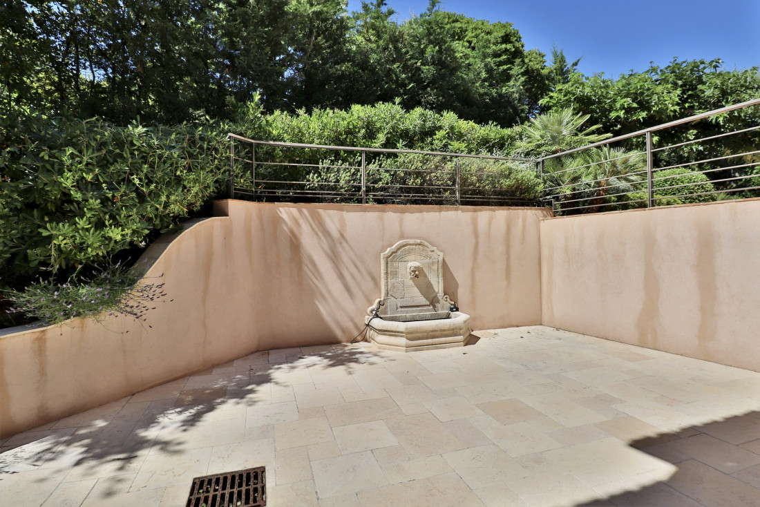 through dining room opening onto a terrace on the sea side and onto a patio with fountain on the land side,