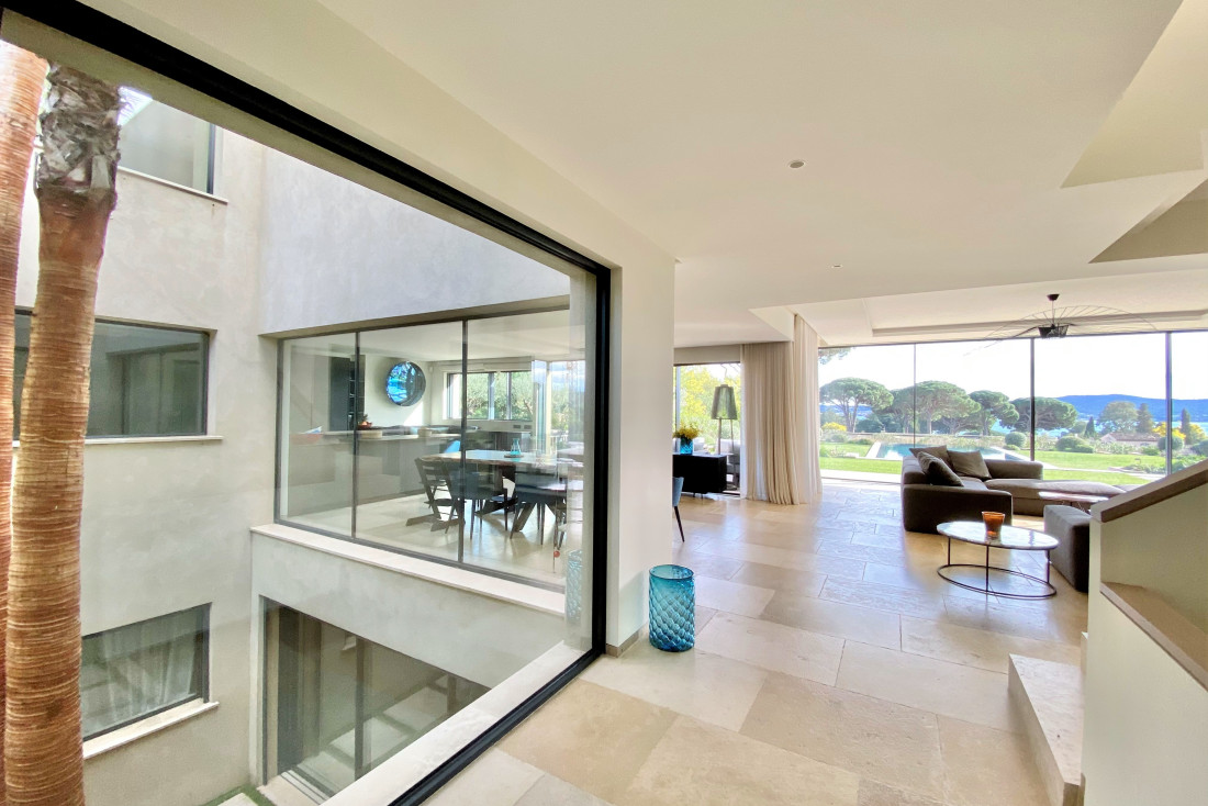 Landscaped and glazed patios allowing to live both inside and outside.