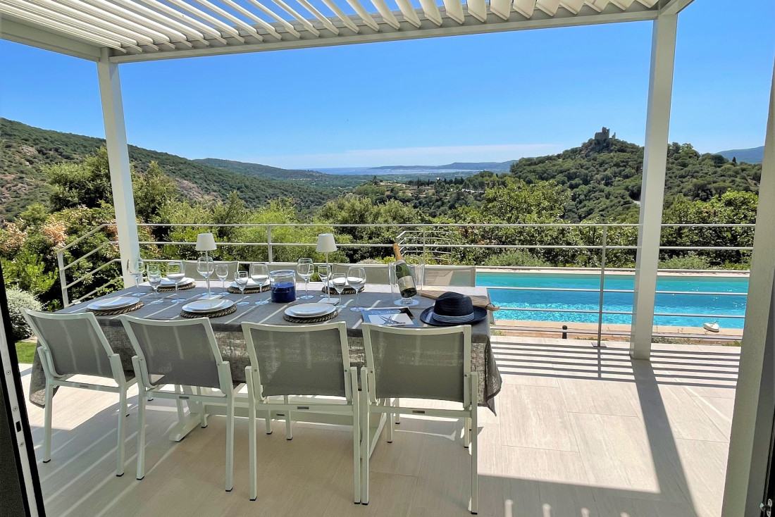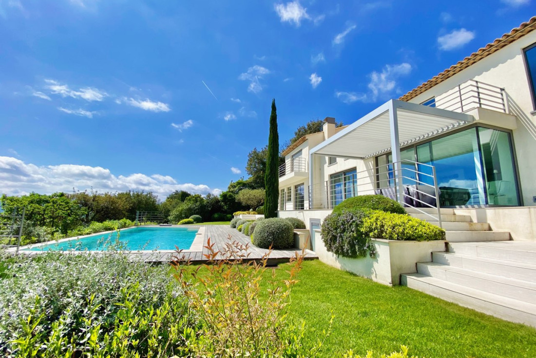 Modern villa with sea views over the Gulf of Saint-Tropez, the Château de Grimaud and the hills