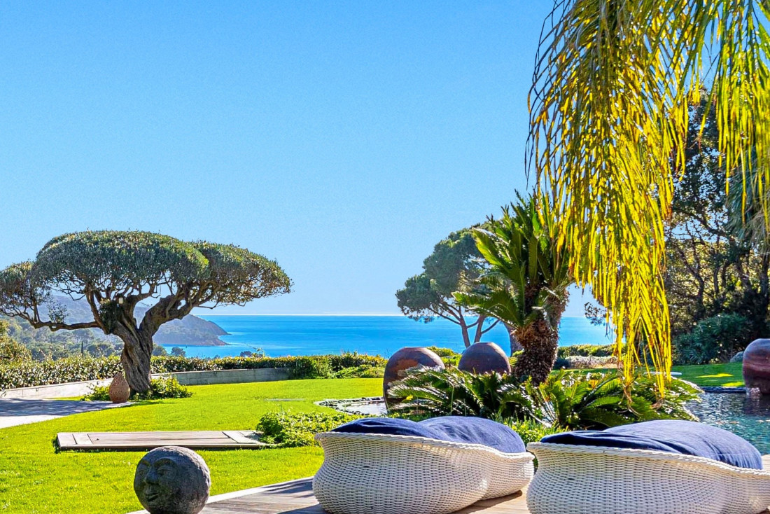 Large, flat, landscaped grounds with exceptional specimens, second swimming pool surrounded by numerous terraces and relaxation areas.
