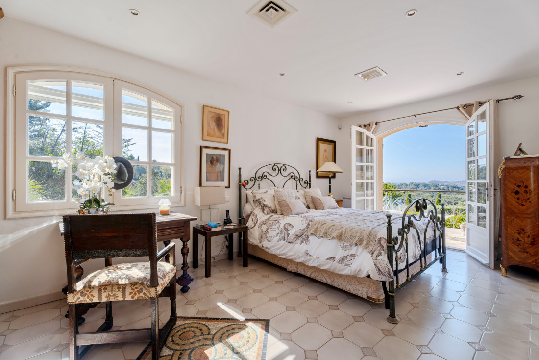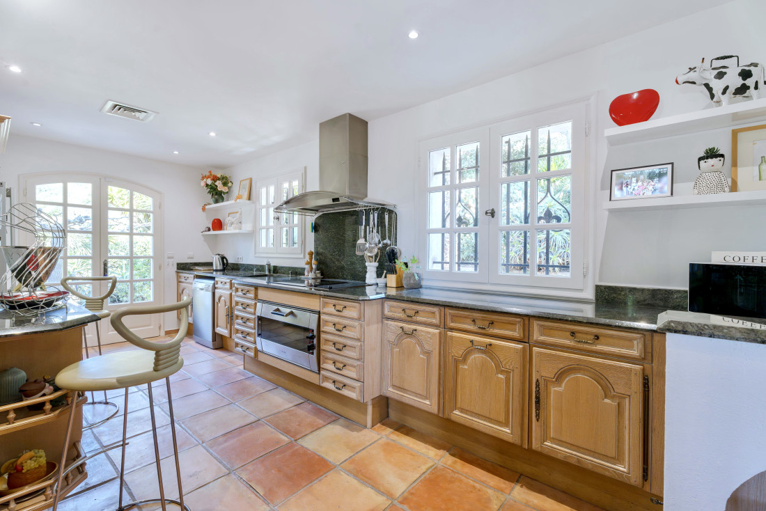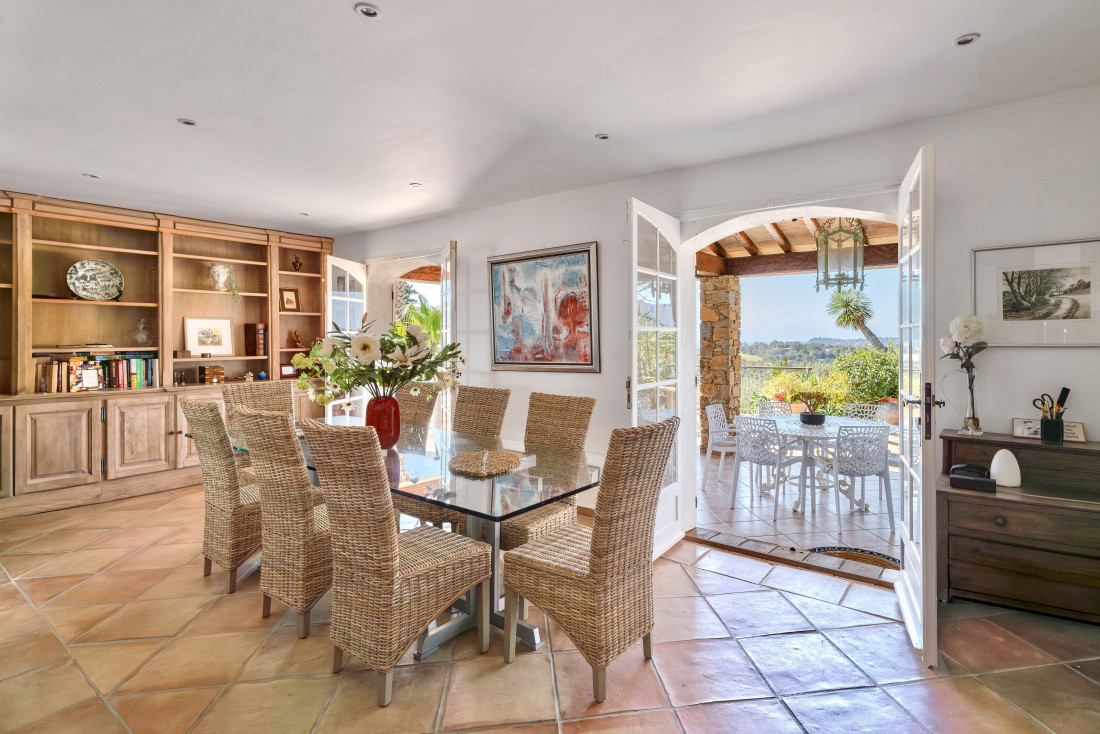The landscaped 1,400 m² grounds include multiple terraces for gatherings, a swimming pool to cool off under the Mediterranean sun.