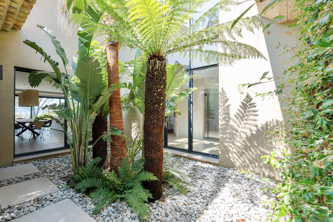 Flat garden designed by a renowned landscape architect. Ample parking (large 125m² garage, carport, parking spaces) with easy access for sports cars.