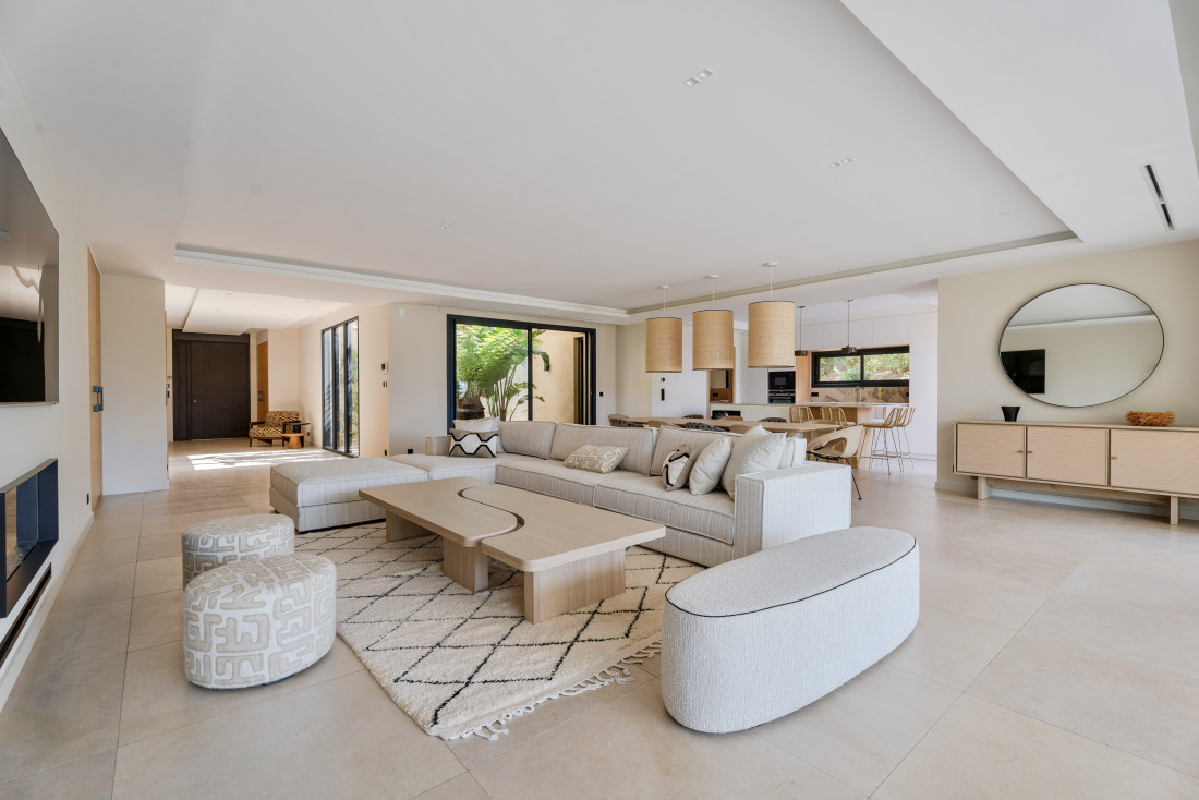 On the ground floor, opening onto large terraces, kitchen, living room, master bedroom with dressing room and study,
