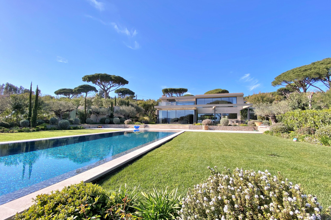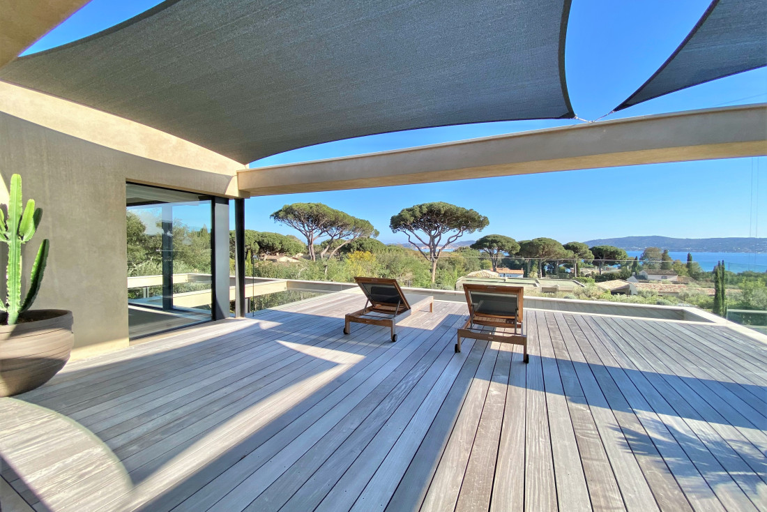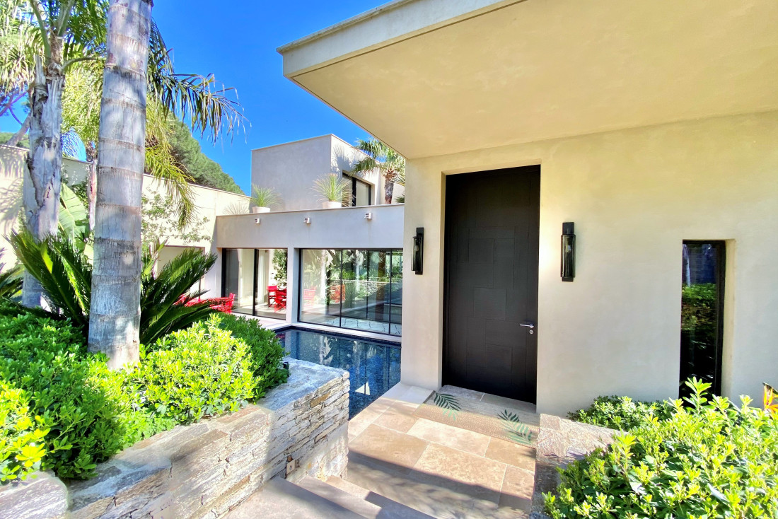 Somptueuse propriété contemporaine à vendre dans le quartier résidentiel prisé de Beauvallon, alliant luxe, design architectural et emplacement d’exception à seulement quelques pas des plages et des restaurants, tout en préservant une atmosphère paisible et intimiste.