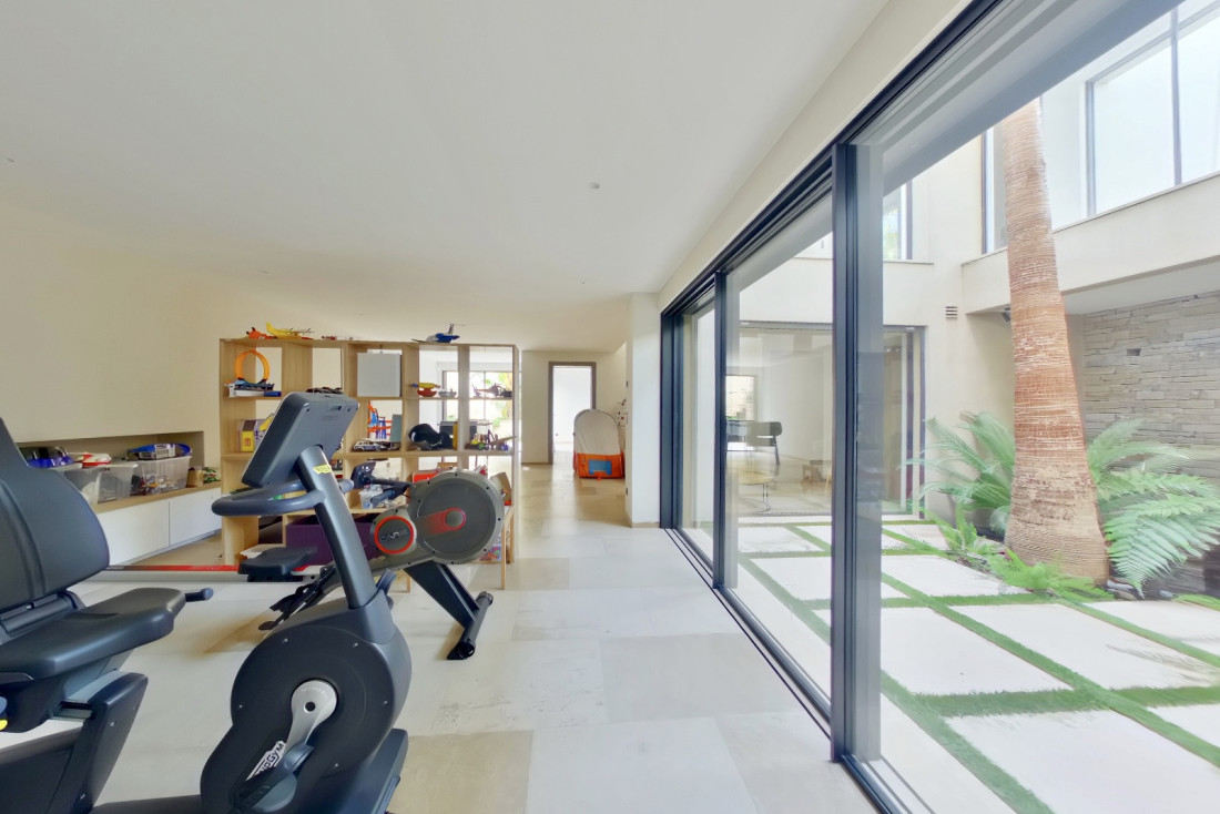 Les multiples terrasses aménagées garantissent une intimité préservée, tandis que les patios paysagés et vitrés créent une harmonie parfaite entre intérieur et extérieur, pour une vie en pleine nature sans renoncer au confort. Salle de jeux, cave à vin climatisée et buanderie complètent ce bien d’exception.