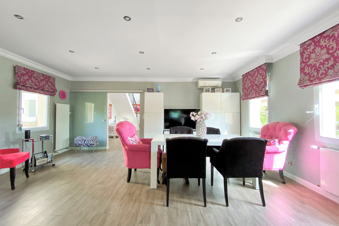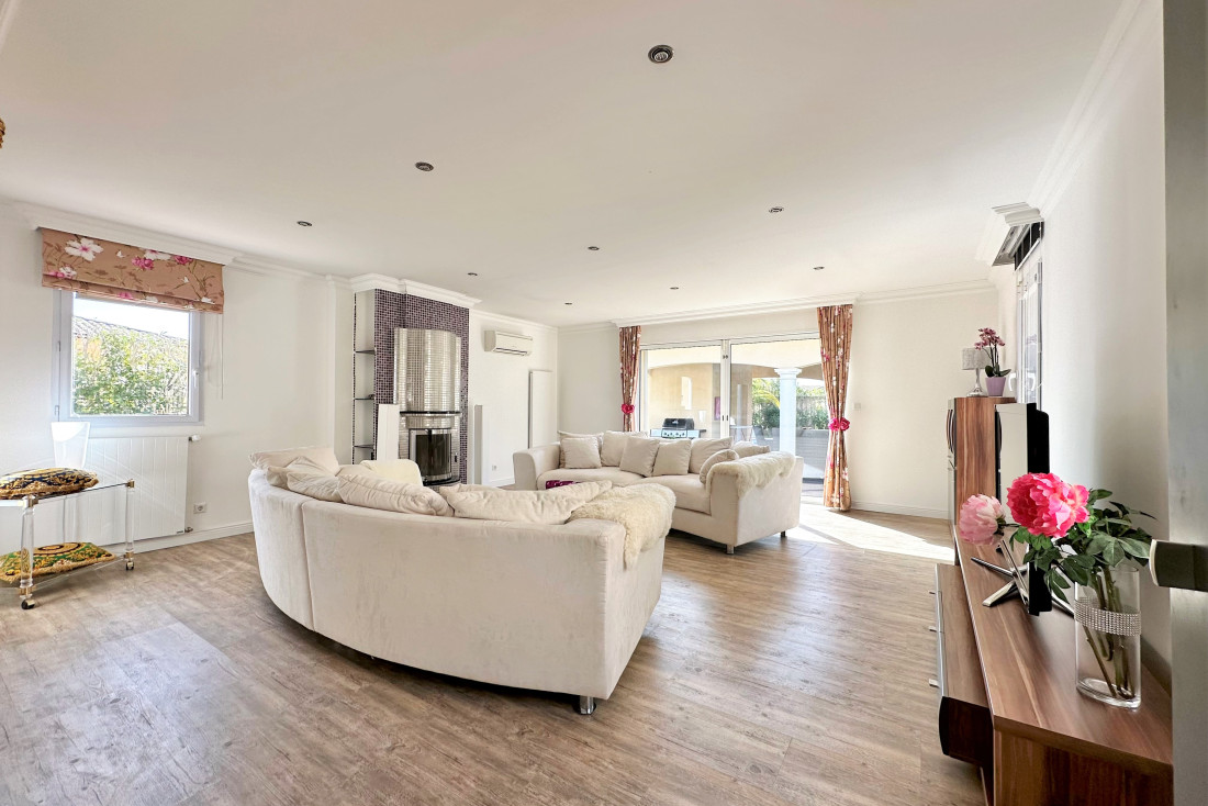Côté nuit, cette villa de 4 chambres en suite (dont 2 de plain-pied) garantit intimité et confort, chacune disposant de sa salle d’eau et WC privatifs. Les extérieurs, pensés pour le bien-être, abritent un pool house fonctionnel, une piscine au sel chauffée pour des baignades toute l’année, ainsi qu’un garage double et un atelier pour les passionnés de bricolage ou de stockage.