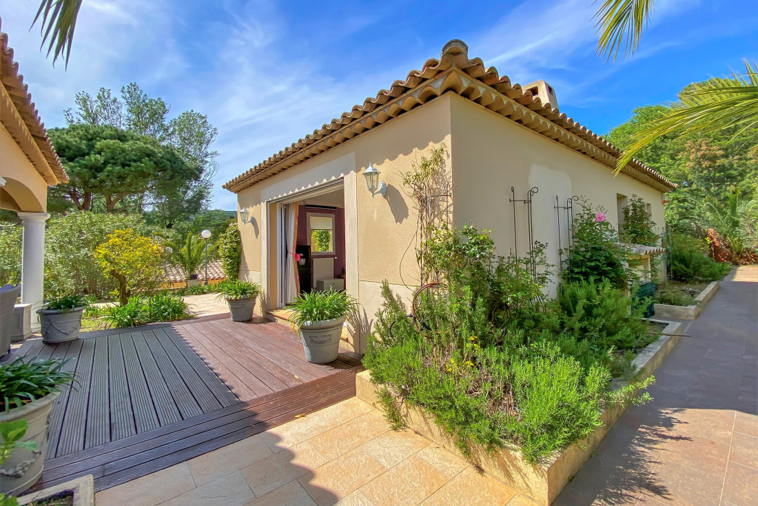 Villa à vendre à Grimaud, idéale pour les amateurs de proximité et de sérénité, nichée dans un domaine sécurisé à quelques minutes seulement des plages et des commerces locaux. Ce bien rare allie emplacement privilégié, confort absolu et espaces généreux pour une vie entre détente et élégance.