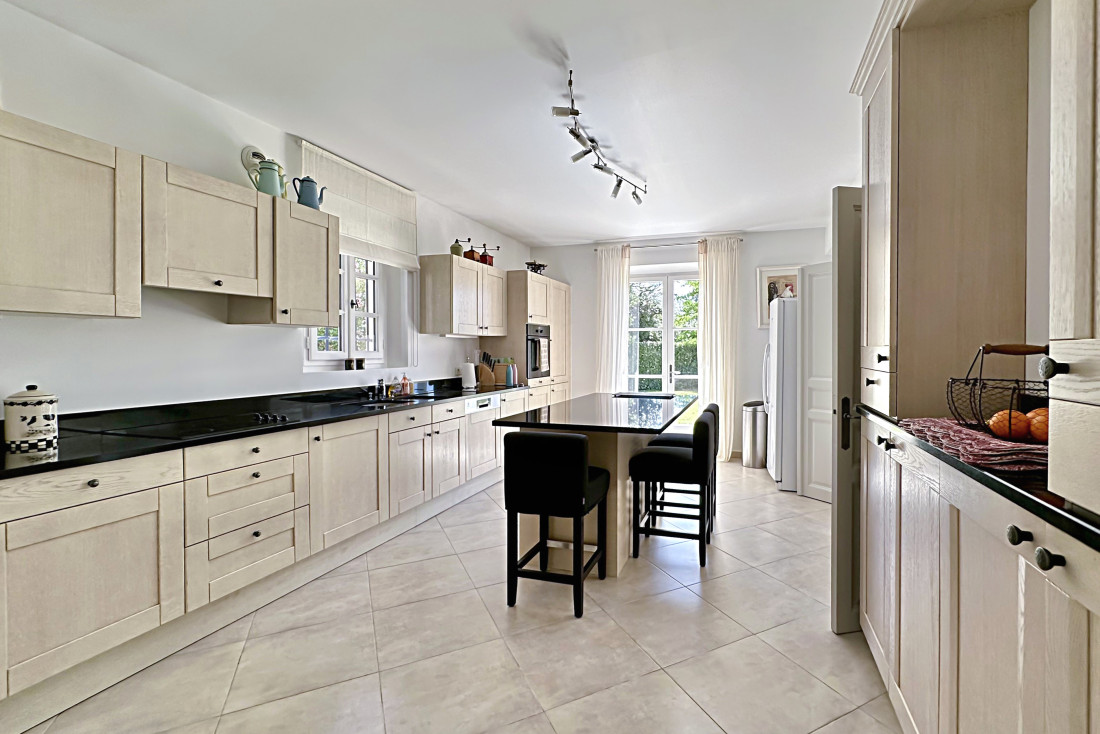 Dès l’entrée, un patio élégant vous accueille vers un hall avec toilettes invités, menant à un salon baigné de lumière agrémenté d’une cheminée et ouvrant sur une vaste terrasse couverte, idéale pour des soirées estivales inoubliables. La salle à manger, prolongée par une pergola conviviale, et la cuisine entièrement équipée – incluant cellier et buanderie – offrent un espace de vie fonctionnel et raffiné.