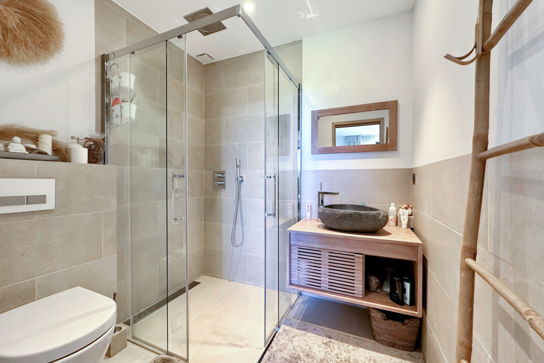 Les 5 chambres en suite, chacune avec sa salle de bain privative, offrent un confort absolu. Un bureau et une salle de jeux complètent les espaces intérieurs, tandis qu’à l’extérieur, les grandes terrasses et la pergola bioclimatique invitent à la détente.