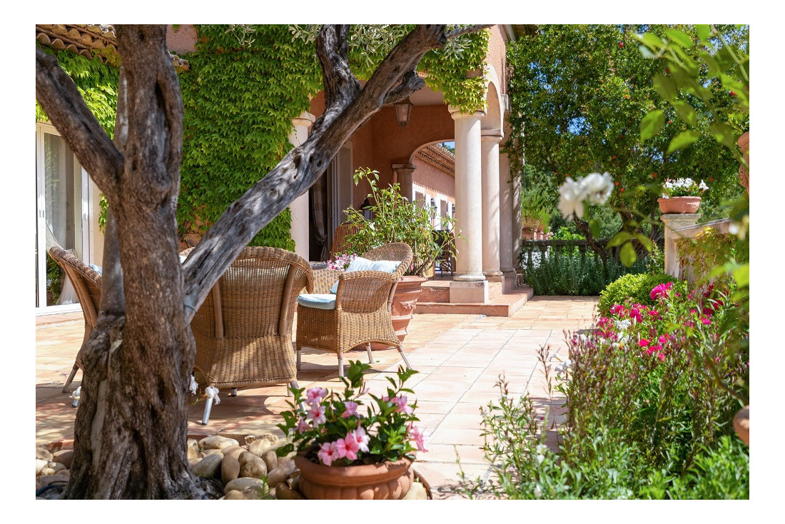 Villa provençale vue mer à vendre à La Croix-Valmer, nichée dans un domaine sécurisé sur les hauteurs de Gigaro, offrant une vue imprenable sur la mer. Bénéficiant d’un cadre paisible et d’un terrain paysager de 6 800 m², cette propriété allie charme et fonctionnalité avec une cour spacieuse, des parkings, un abri pour deux voitures et un garage.
