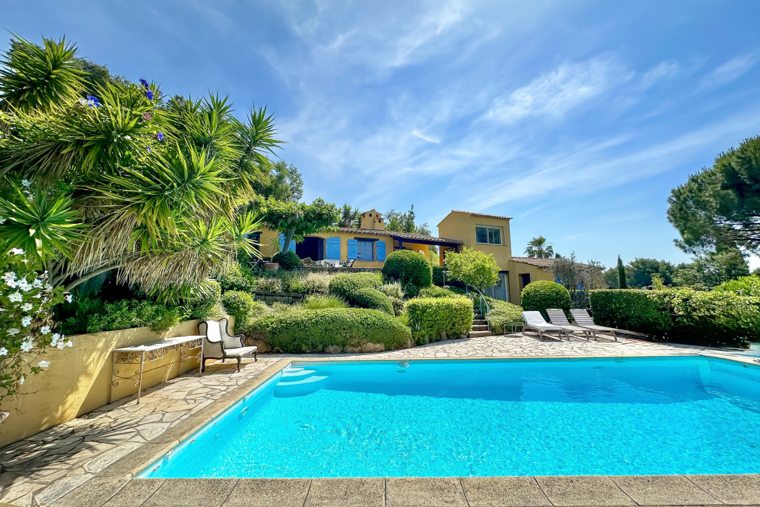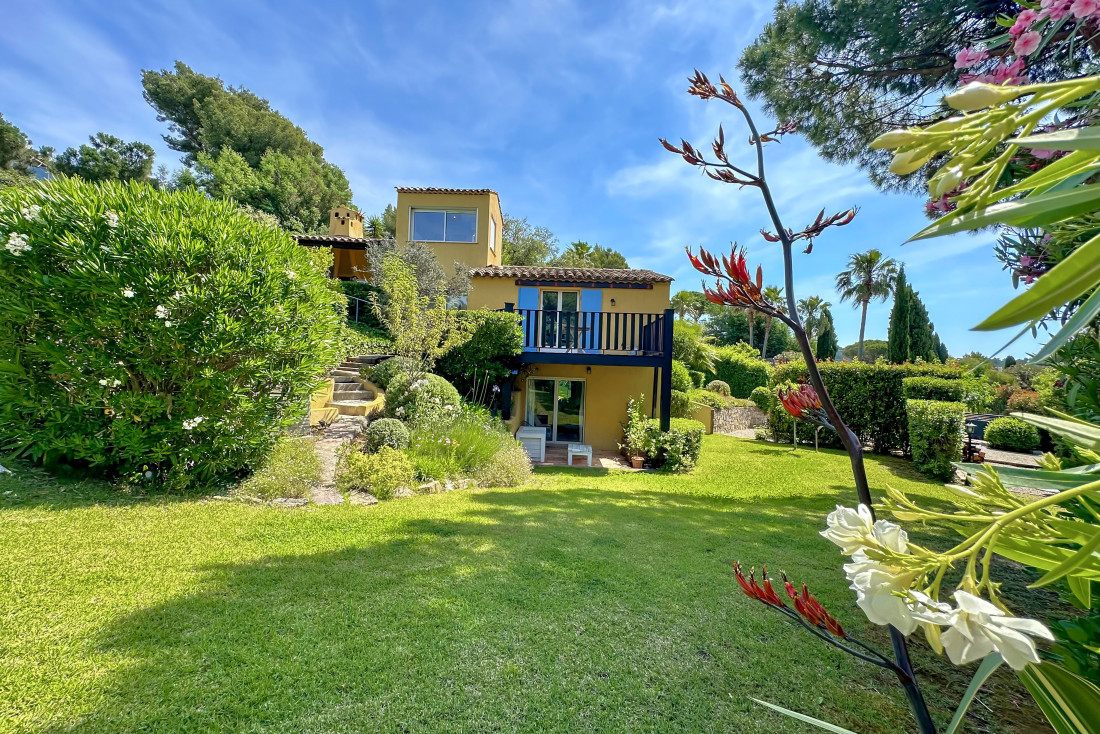 Villa à vendre près du village de La Croix-Valmer, offrant une vue imprenable sur les collines, la mer Méditerranée et le Port de Cavalaire. Nichée sur un terrain arboré de 1 650 m², cette propriété allie charme provençal et confort moderne.