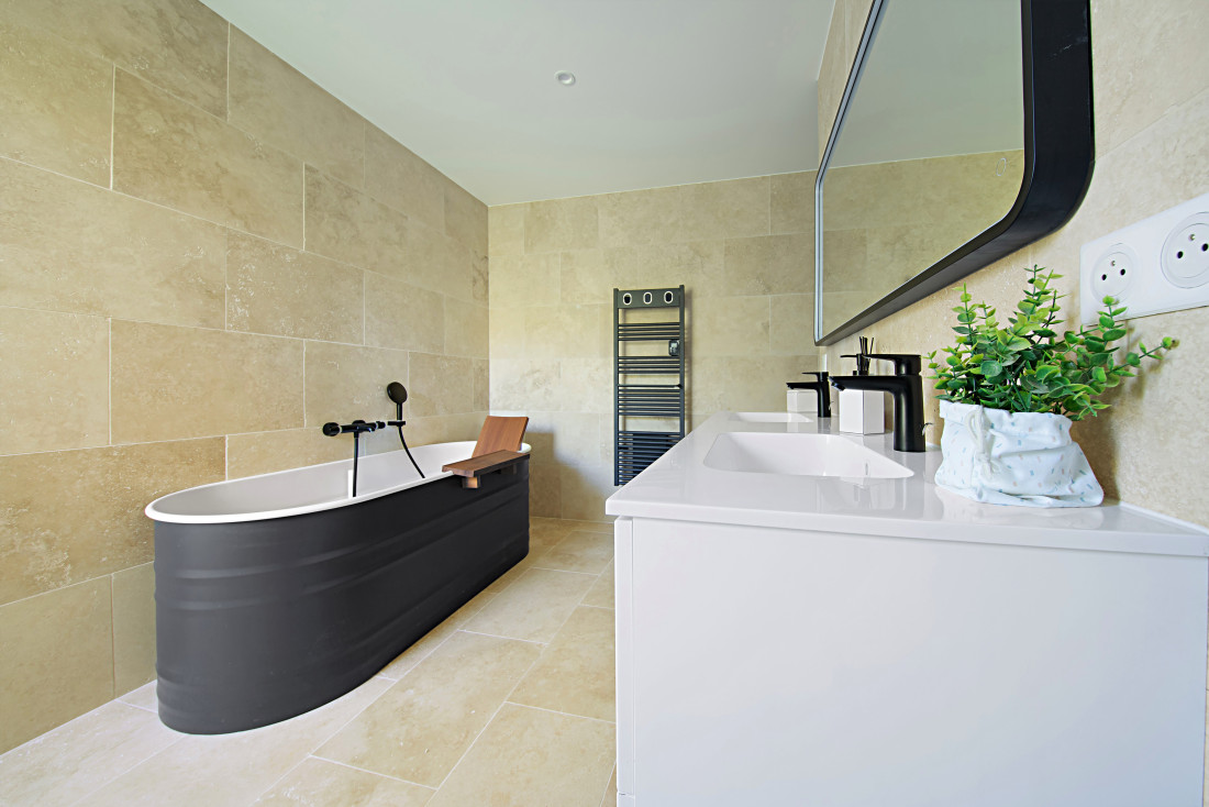 Ici, chaque instant est optimisé pour votre bien-être. La piscine à débordement chauffée (11x4m), traitée au sel pour un confort optimal, vous permet de profiter de baignades toute l’année, tandis que son fond plat (1,6m) et son volet automatique en font un espace à la fois sûr et pratique. Pour des moments de détente absolue, un spa privatif vous attend, transformé en un cocon de sérénité.