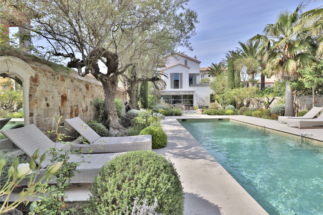 Le terrain plat et magnifiquement aménagé séduit par son allée pavée spacieuse, capable d’accueillir plusieurs véhicules, et son jardin d’exception organisé autour d’une piscine chauffée entourée de grandes terrasses en pierre. Agrémenté de massifs fleuris, d’oliviers centenaires et de deux bassins en pierre, cet espace extérieur allie raffinement et sérénité, parfait pour des moments de convivialité ou de repos.