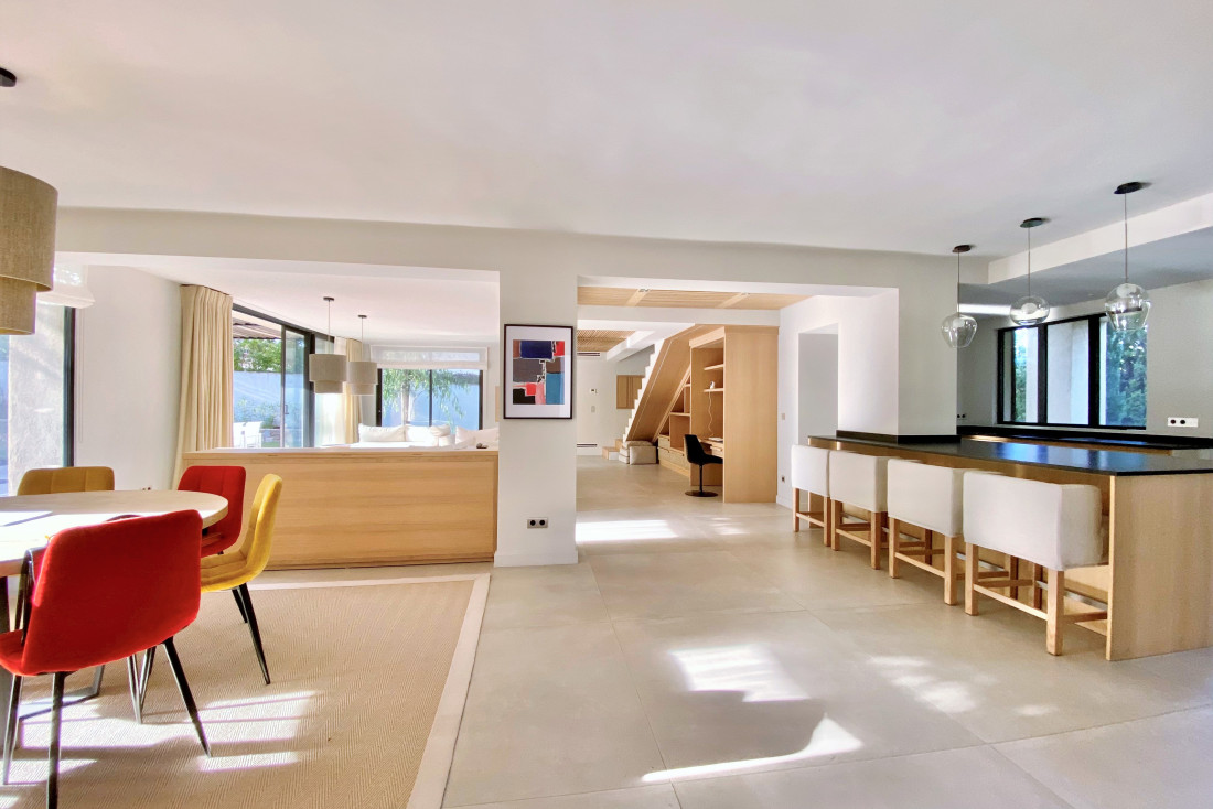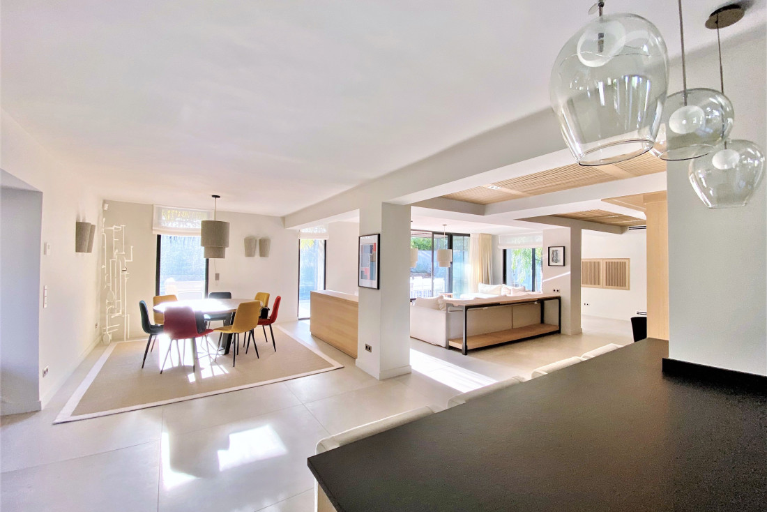 Pour accueillir vos proches en toute sérénité, une dépendance indépendante de plain-pied propose deux chambres spacieuses en suite, chacune dotée de sa salle de douche et de ses WC. Piscine chauffée, garage sécurisé et prestations contemporaines de haute qualité complètent ce bien rare, à seulement quelques minutes à pied du cœur historique de Saint-Tropez.