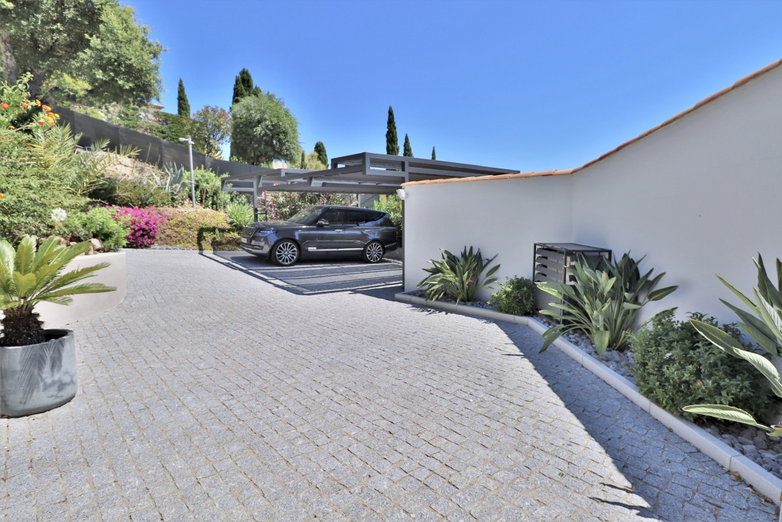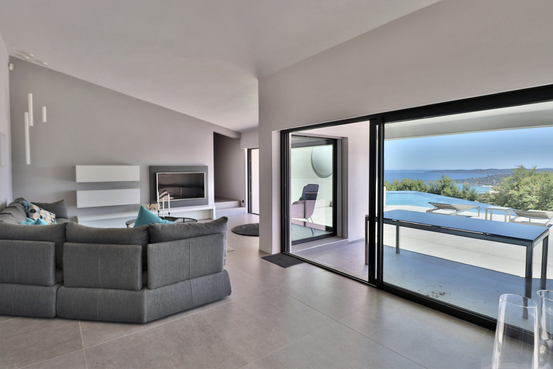 Villa contemporaine à vendre à Sainte-Maxime, offrant une vue mer panoramique sur le Golfe de Saint-Tropez. Nichée dans le domaine sécurisé de La Nartelle, cette propriété allie luxe, sérénité et raffinement, idéale pour une résidence principale ou secondaire d’exception.