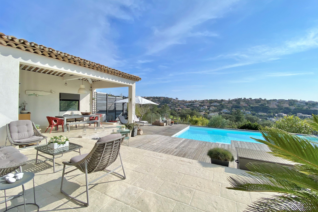 villa récente à vendre au cœur du prestigieux et sécurisé Domaine du Golf à Sainte-Maxime, un écrin de tranquillité et de luxe où le confort rime avec élégance.