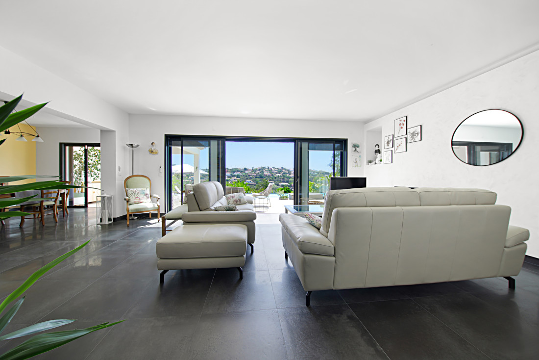 Baignée de lumière, cette spacieuse villa contemporaine offre une vue imprenable sur les greens, les collines environnantes et un aperçu de la mer, le tout dans un cadre sans vis-à-vis et ultra-paisible. Profitez d’un espace de réception généreux de 63 m², idéal pour recevoir, ainsi que de belles terrasses invitant à la détente en plein air.