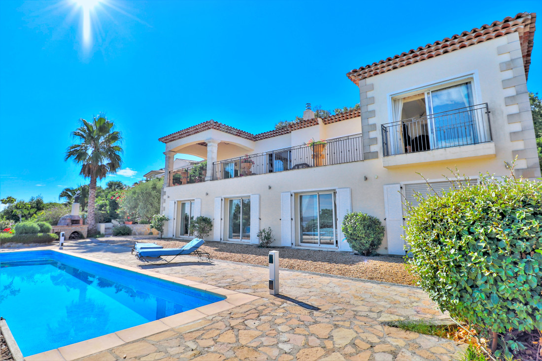 En beschikt over een panoramisch zicht op de baai van Saint-Tropez. Het bestaat uit een grote woonkamer met open haard, volledig uitgeruste keuken,