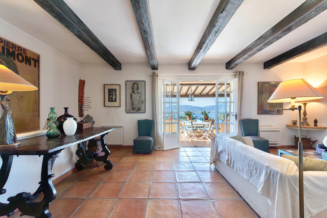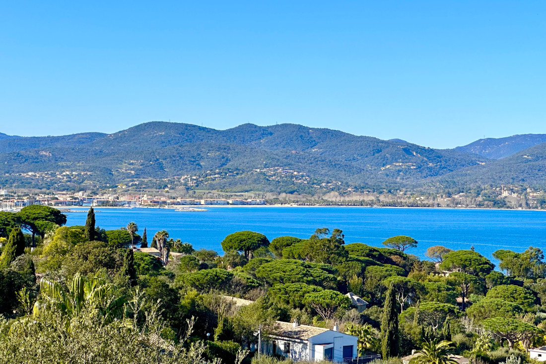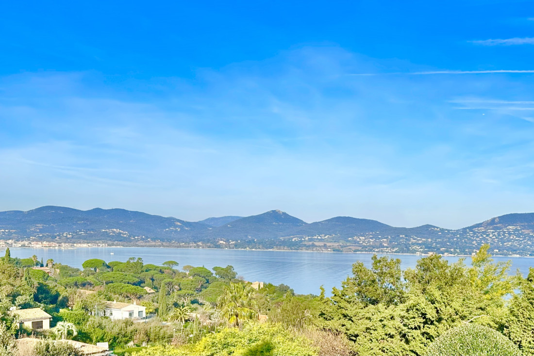 De villa is gelegen in een rustige omgeving en biedt een panoramisch zeezicht over de Golf van Saint-Tropez.