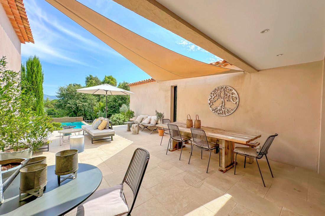 Deze hedendaagse villa is rustig gelegen, volledig zuidgericht en ligt op wandelafstand van het dorp Grimaud.
