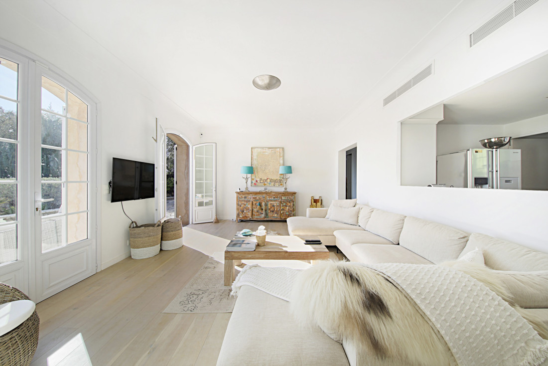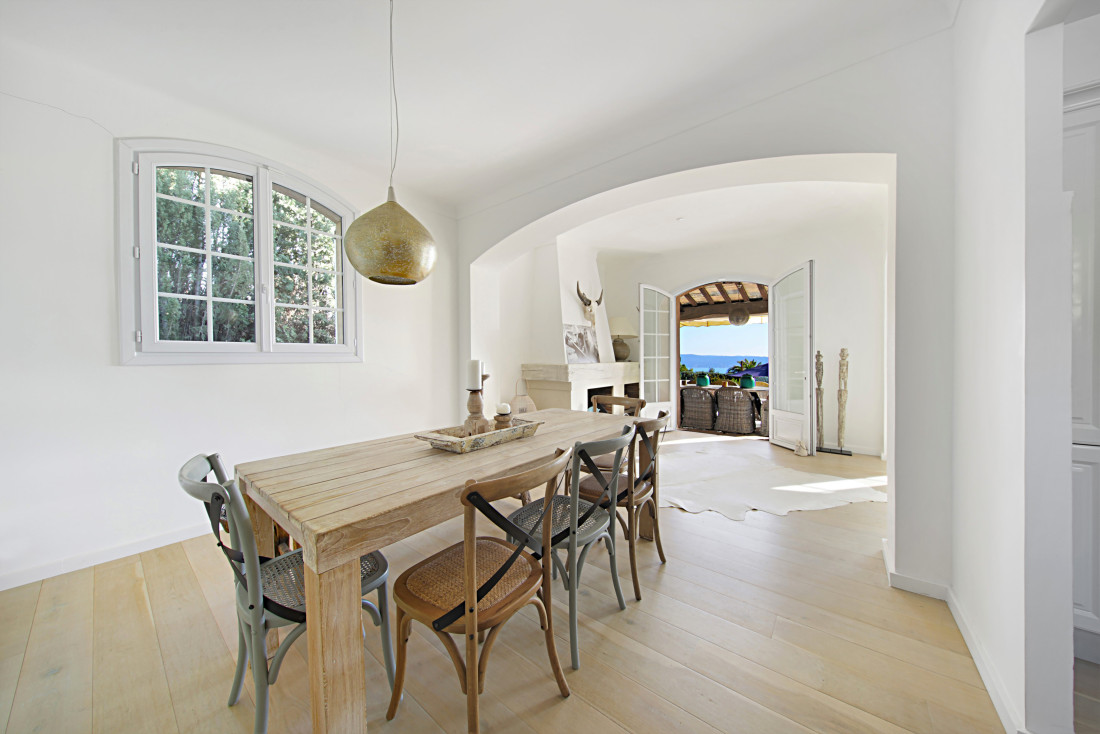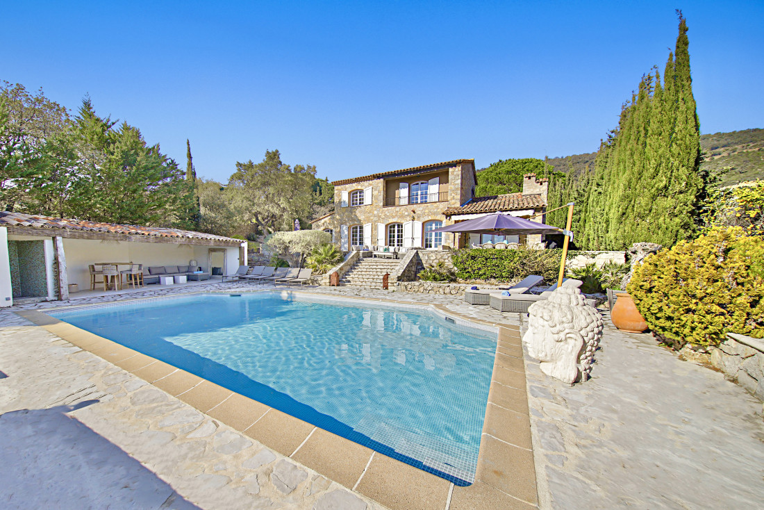 Op het beveiligde domein van Beauvallon Bartole, ligt deze volledig gerenoveerde stenen villa met zeezicht over de Golf van Saint-Tropez en dit in alle rust en zonder inkijk.