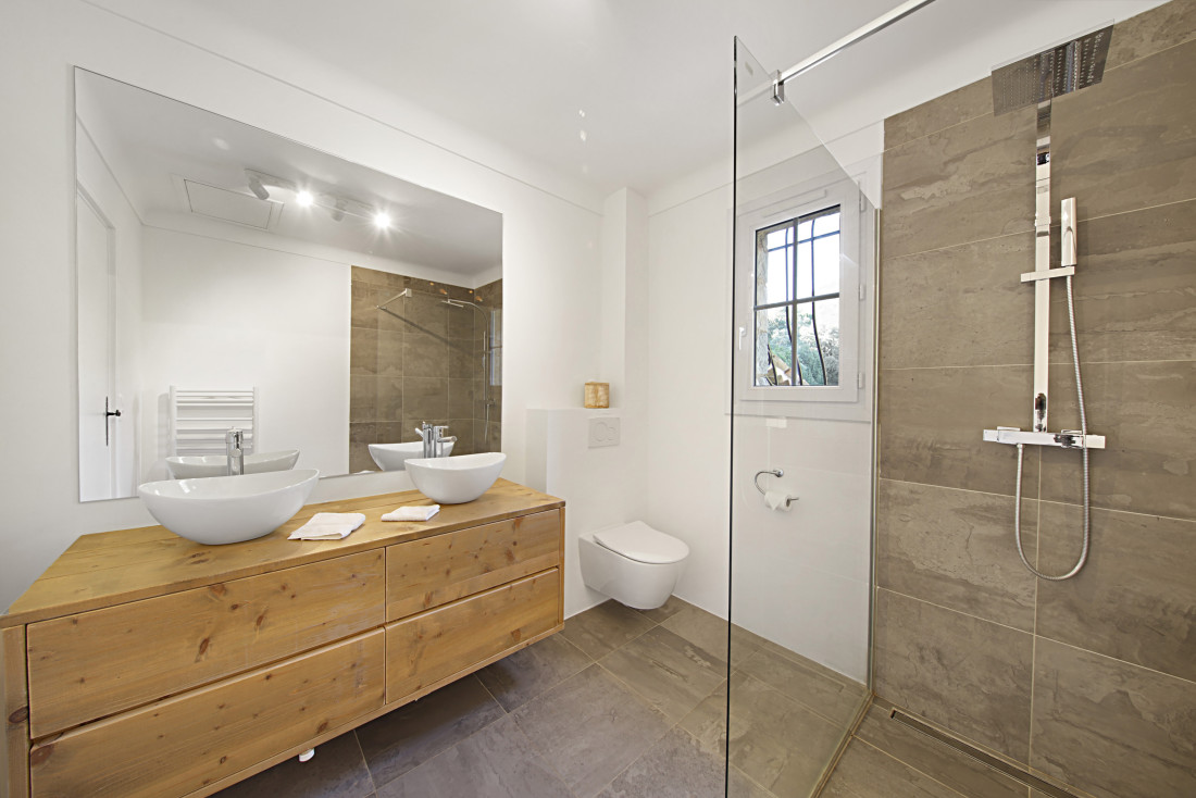 Er is een verwarmd zwembad omgeven door terrassen, een poolhouse met douche, een garage en een wasruimte.