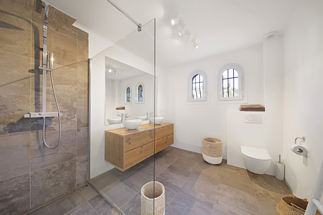 Op de bovenverdieping hebt u een masterbedroom met balkon, 2 slaapkamers en twee doucheruimtes met toilet.