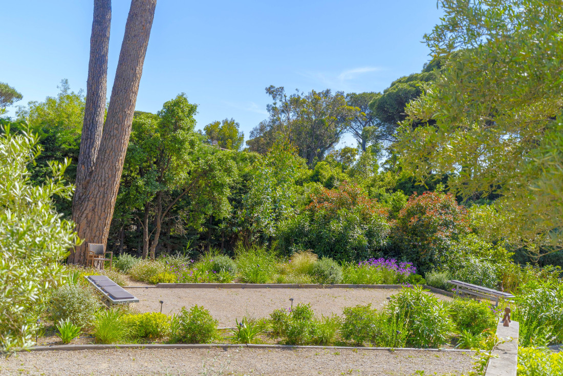 Buiten geniet je van een groot, vlak aangelegd perceel van 2.400 m², een prachtig zwembad met zicht op de Middellandse Zee, en extra voorzieningen zoals een petanquebaan, airconditioning en kwalitatieve afwerking.