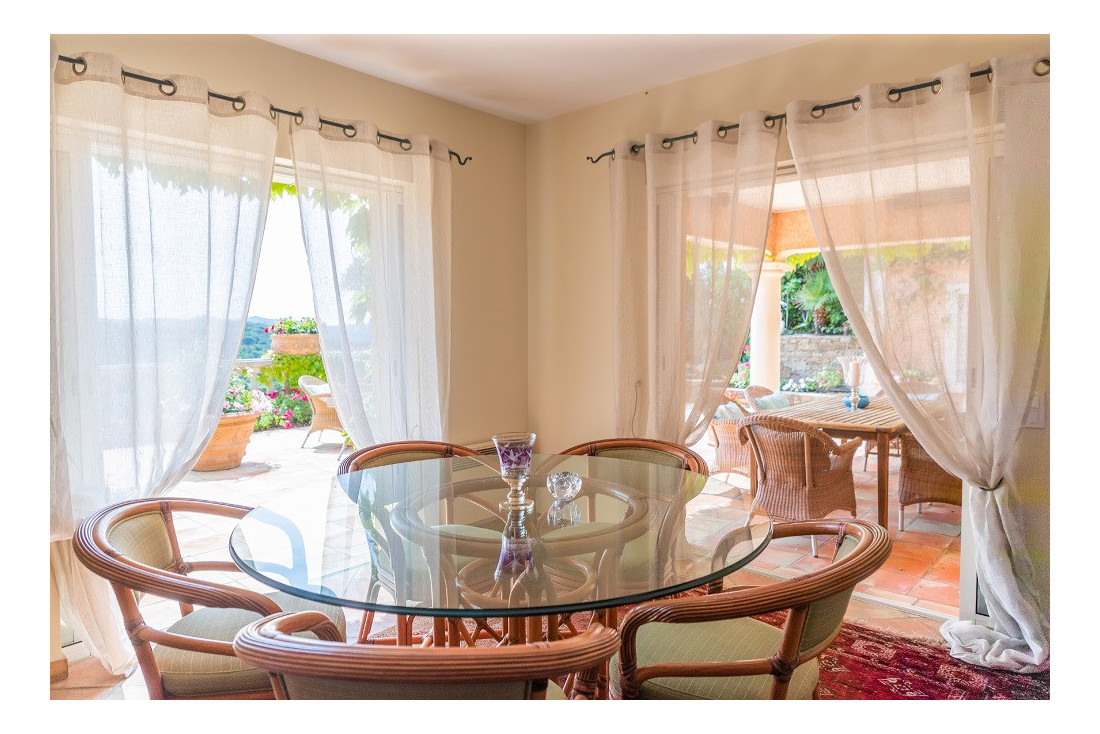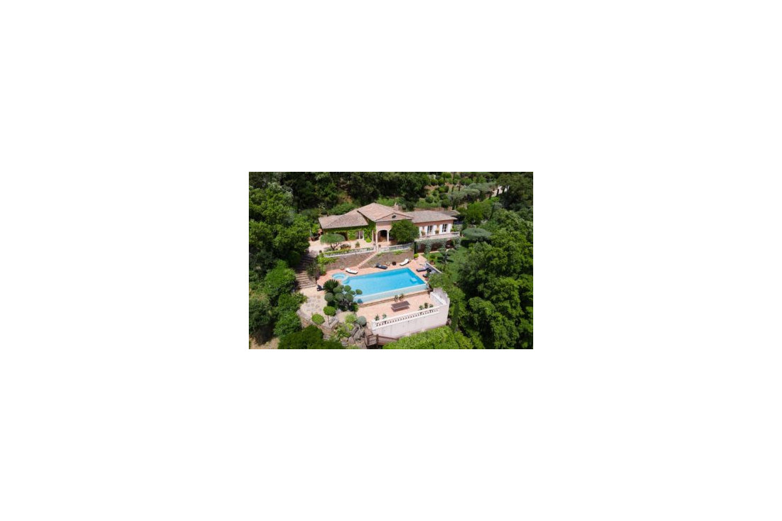 Op een beveiligd domein op de hoogtes van Gigaro, is deze provençaalse villa, met zeezicht, rustig gelegen op een aangelegd terrein van 6.800 m².