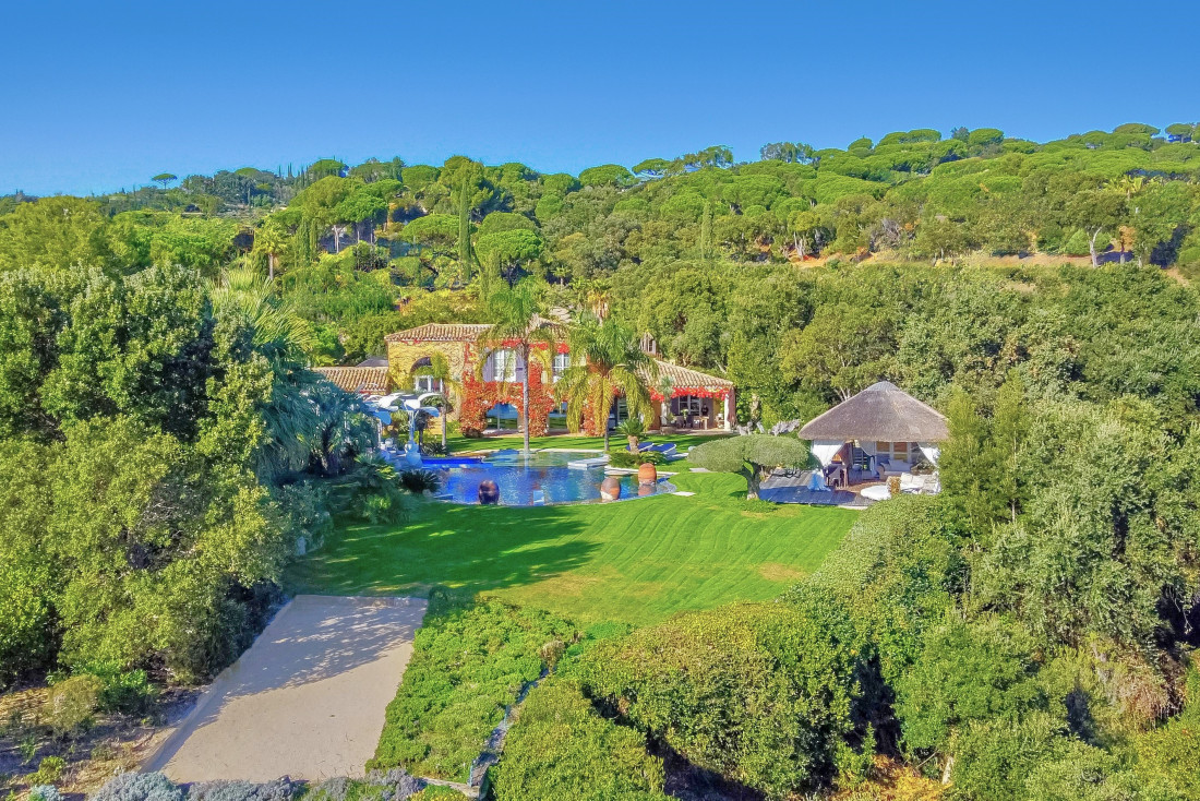 Op een beveiligd en prestigieus domein, gelegen op de hoogtes van Gigaro, bevindt zich deze eigendom met unieke charme en panoramisch zeezicht over Cap Lardier en de heuvels.