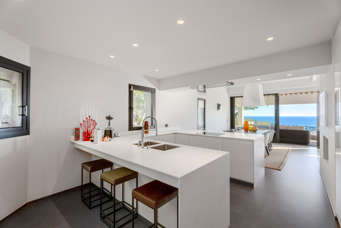 Het poolhouse is voorzien van een sauna, een doucheruimte, een fitnessruimte, een volledig uitgeruste keuken en een toilet. De villa heeft ook een tweede zwembad, omgeven door terrassen en een jacuzzi.