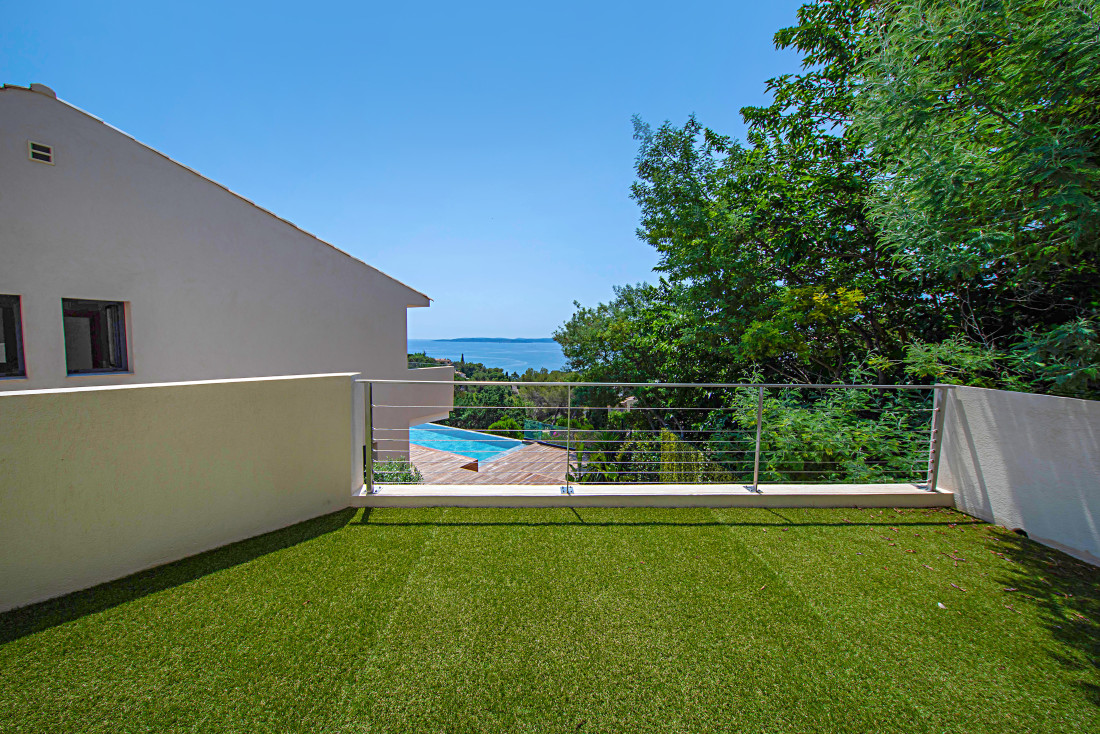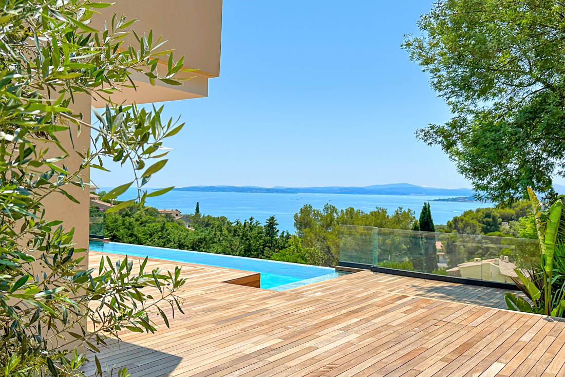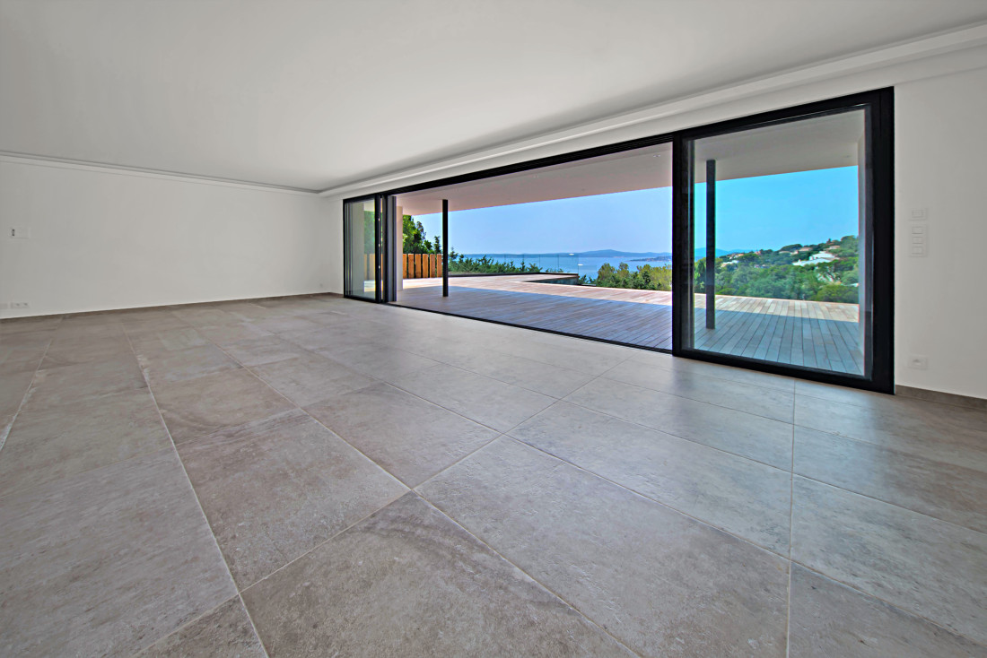 De woning is zuidwest georiënteerd en biedt zeezicht over de Golf van Saint-Tropez