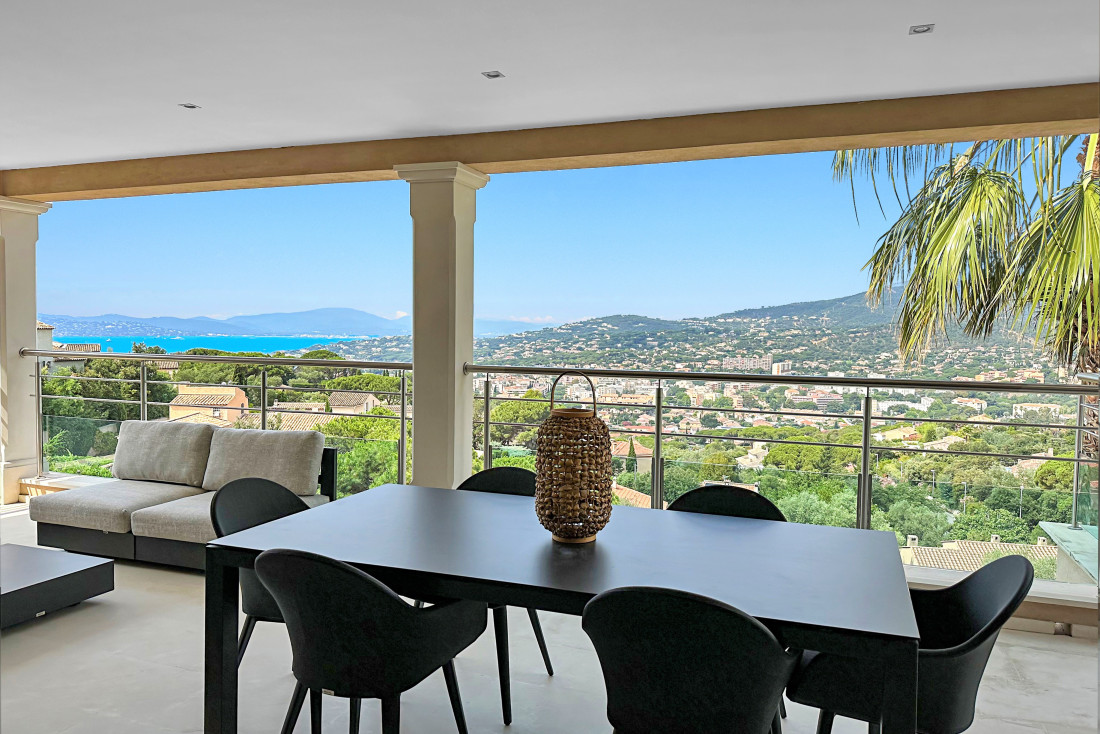 Moderne villa te koop met zicht over de zee, de heuvels en de stad en dit op loopafstand van het centrum van Sainte-Maxime.